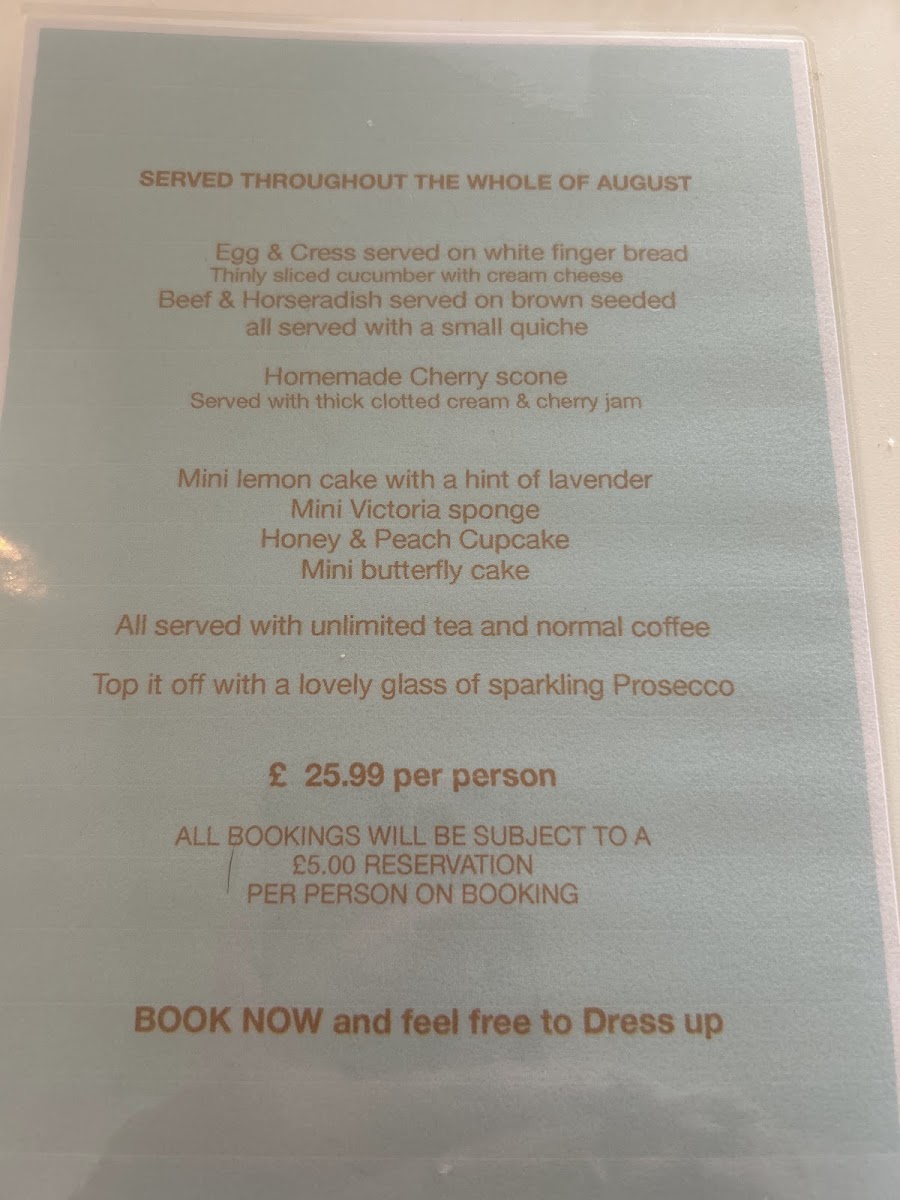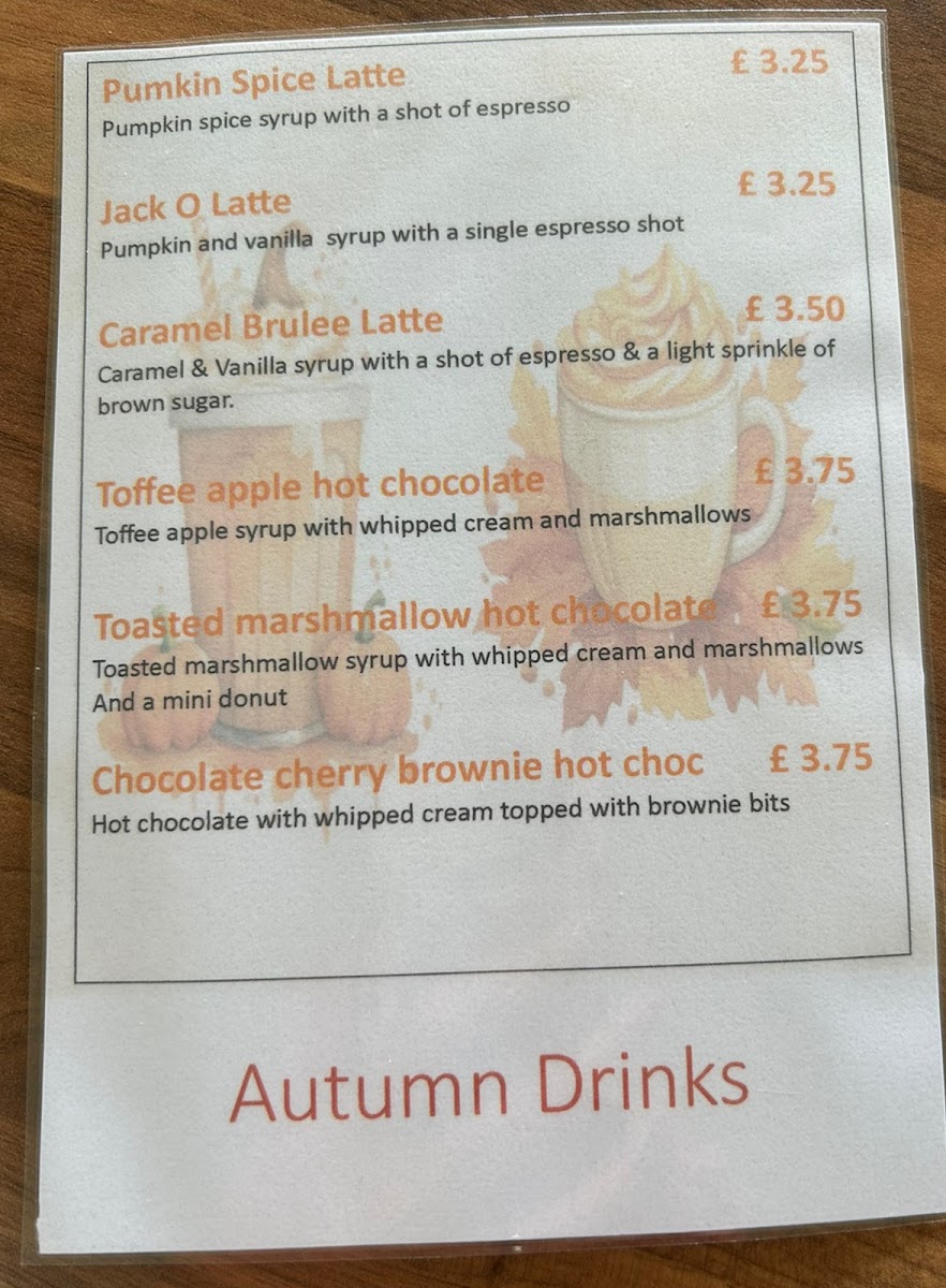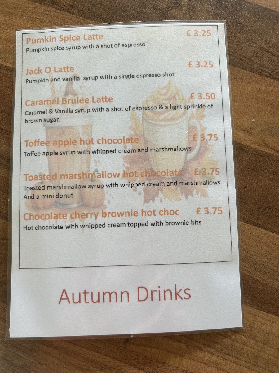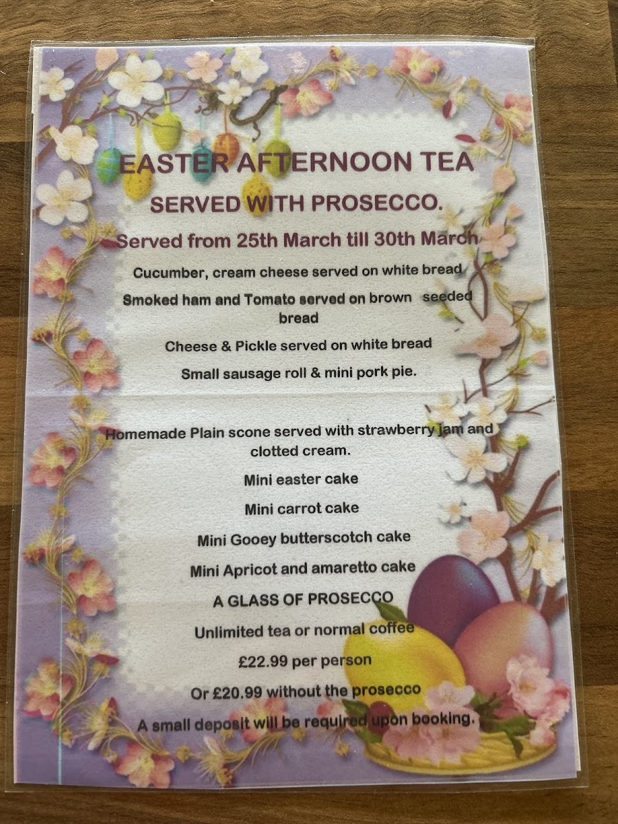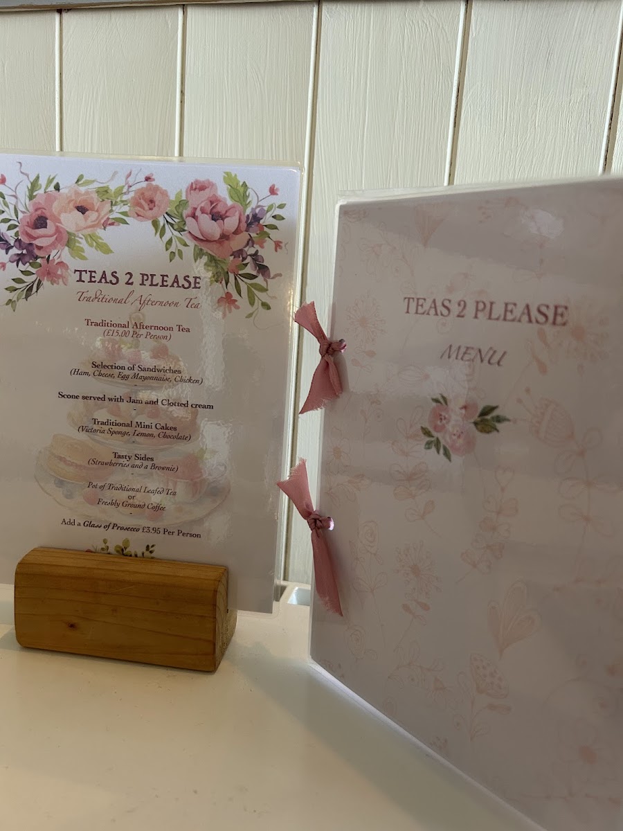 From a reviewer’s perspective, the menu at Teas 2 Please offers a charming and cozy selection, though it leans more toward variety than detailed pricing transparency. The sandwich options, such as Cheese & Pickle On White Bread, Cucumber & Cream Cheese On Brown Seeded, and Ham Salad On Soft Cob, provide classic, comforting choices, while items like Sausage & Cheese / Pineapple On A Stick and Prawn Vol Au Vont & Quiche add a slightly more indulgent touch. The drinks menu stands out with festive specialties including Baileys Hot Coffee Latte, Hot Toddy Latte, Gingerbread Hot Chocolate, and Caribbean Hot Chocolate, alongside staples like Americano, Flat White, Latte, and Cappuccino, plus treats such as Hot Chocolate and Mocha. The afternoon tea selections are particularly appealing, featuring delights like Homemade Scone With Strawberry Jam & Clotted Cream, Mini Chocolate Orange Cake, Mini Lemon Tart With A Butterfly On Top, and Mini Jammie Dodger Cheesecake In Shot Glass, all presented with a playful, indulgent flair. Additional bites like Egg & Cress Served On White Finger Bread, Beef & Horseradish Served On Brown Seeded, Homemade Cherry Scone, and Mini Victoria Sponge round out the offering nicely. While the absence of listed prices makes it harder to gauge value, the menu’s variety and nostalgic, tea-room charm leave a warm and inviting impression overall.